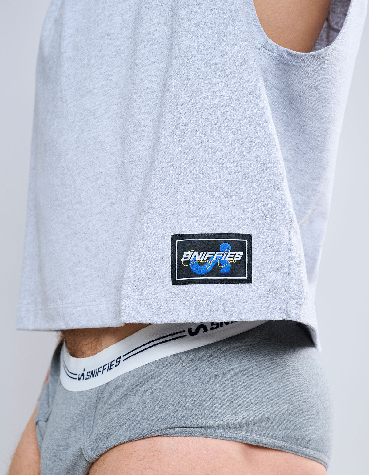 The Sniffies Cruising Club Muscle Tee is a relaxed-fit cropped tee made in a beefy jersey for physical play. With Cruising Club across the back, the Sniffies team logomark emblazoned across the chest, and the Cruising Club's woven tag at the hem, this perfect-fitting muscle cropped tee will make them sweat.