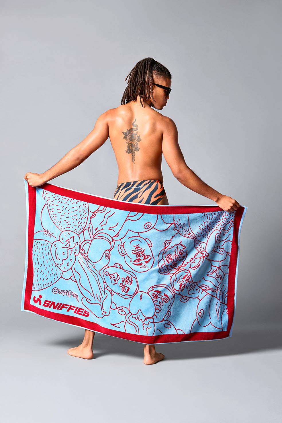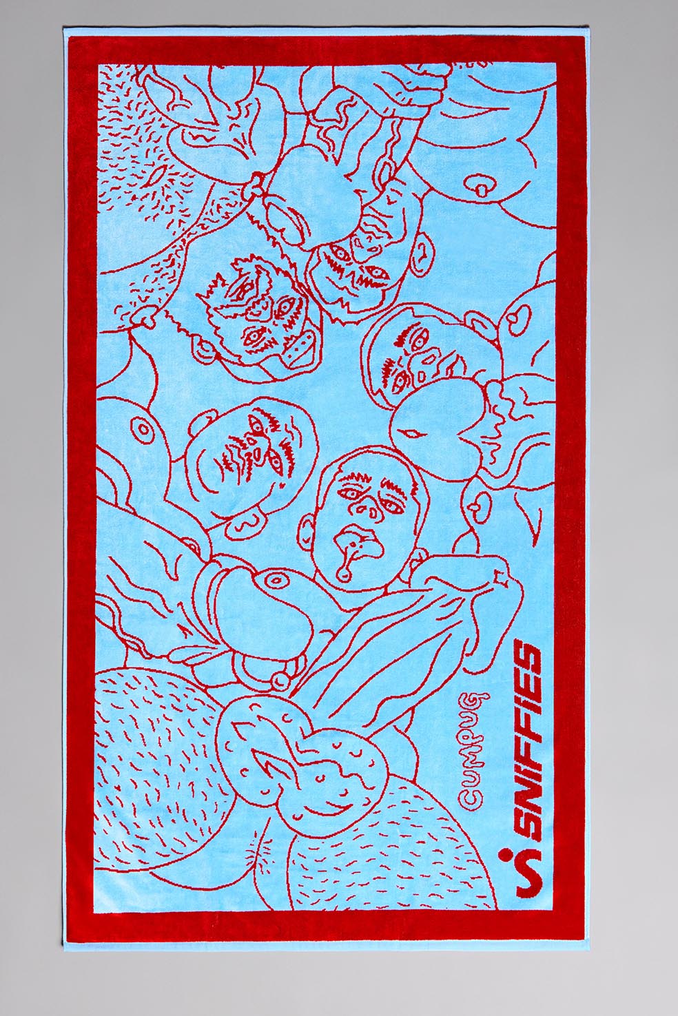 The Bukkake Towel was drawn specifically for Sniffies by the legendary Cumpug, whose visual art explores themes of sexual identity and anonymous sex. This velvety beach towel will turn heads at every beach and pool our Cruisers find themselves. We made a larger towel to ensure there's plenty of room to share, and chose a shear finish for a controlled fray on the towel for a premium, extra soft finish.
