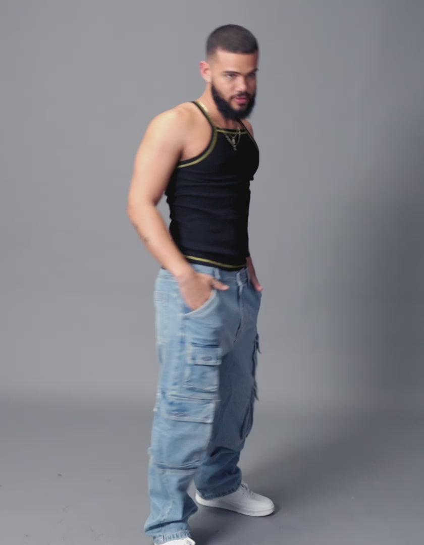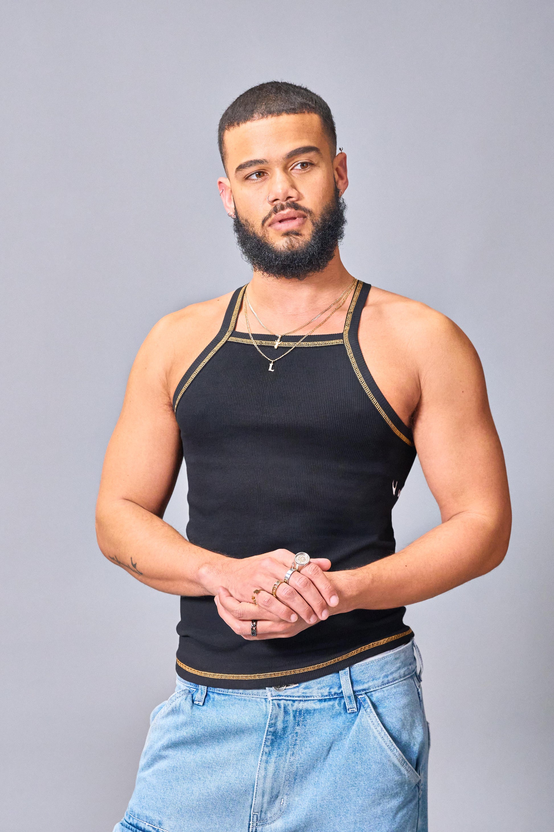 The FANG x Sniffies Essential Ribbed Tank is a modern take on the classic ribbed tank with a square neckline that nods to activewear silhouettes like the singlet. Sewn with gold exterior thread and both logos embroidered at the armhole, this tank was cut for a close fit to become an instant Cruising classic. If you're between sizes, we recommend sizing up.