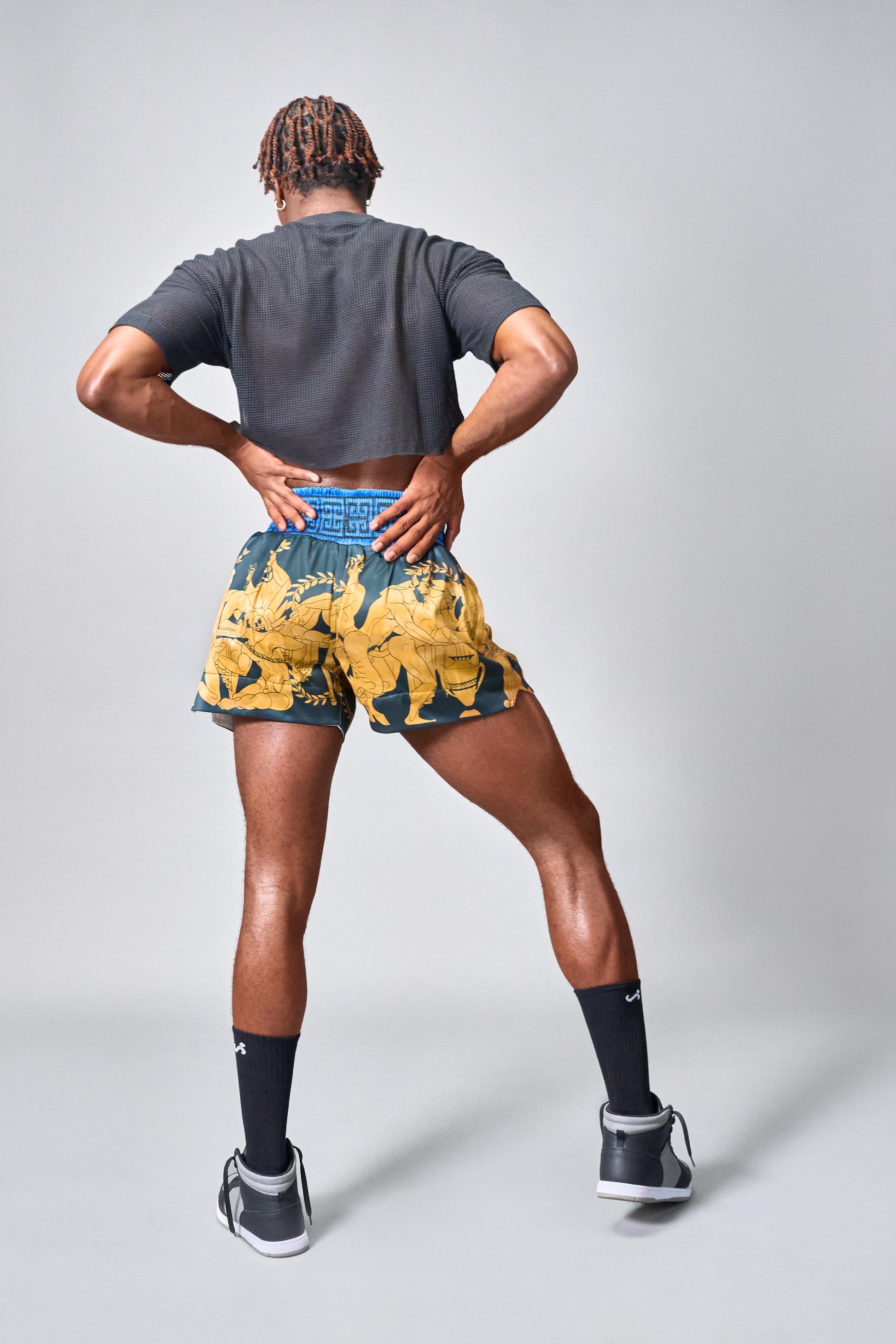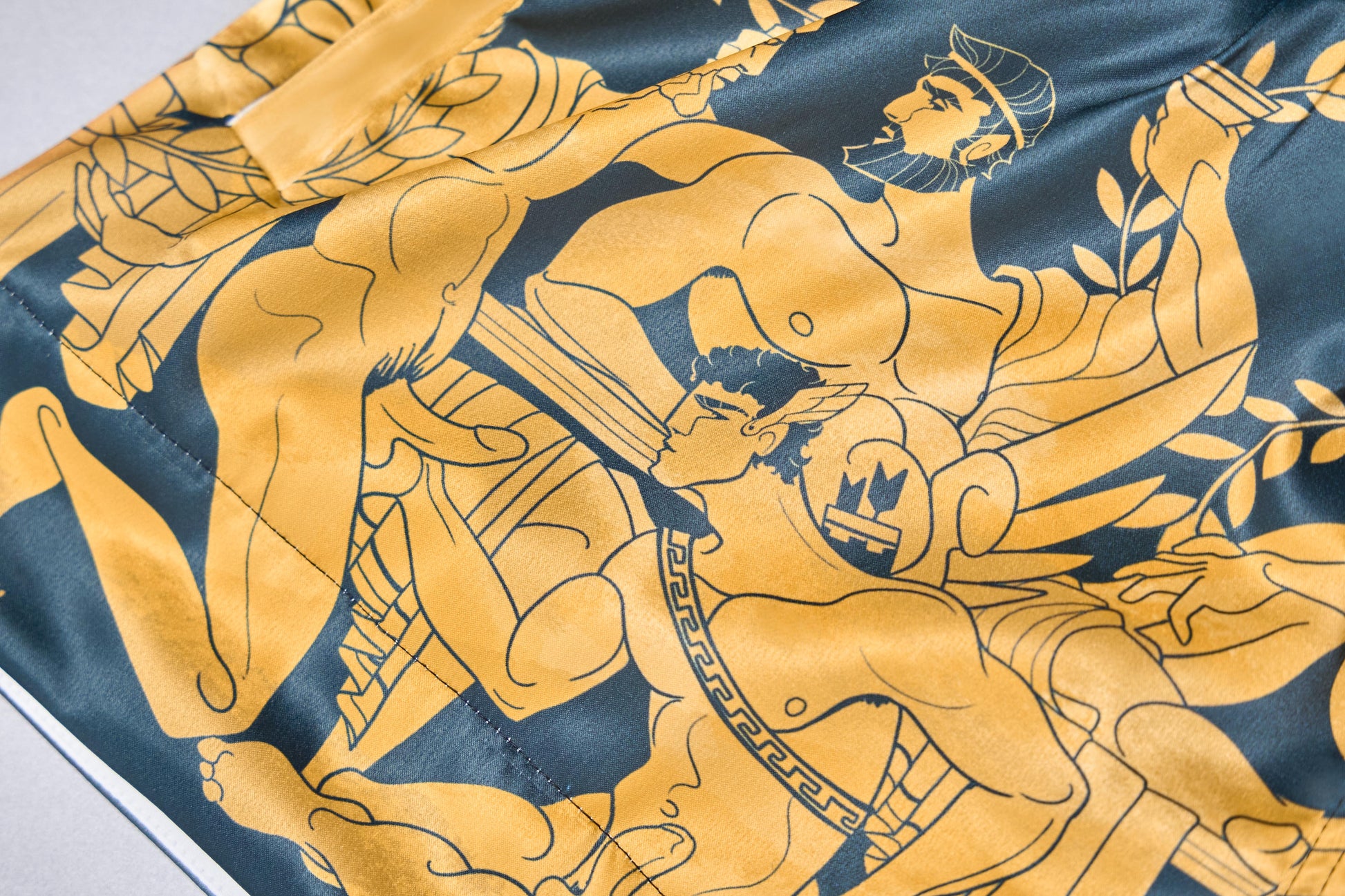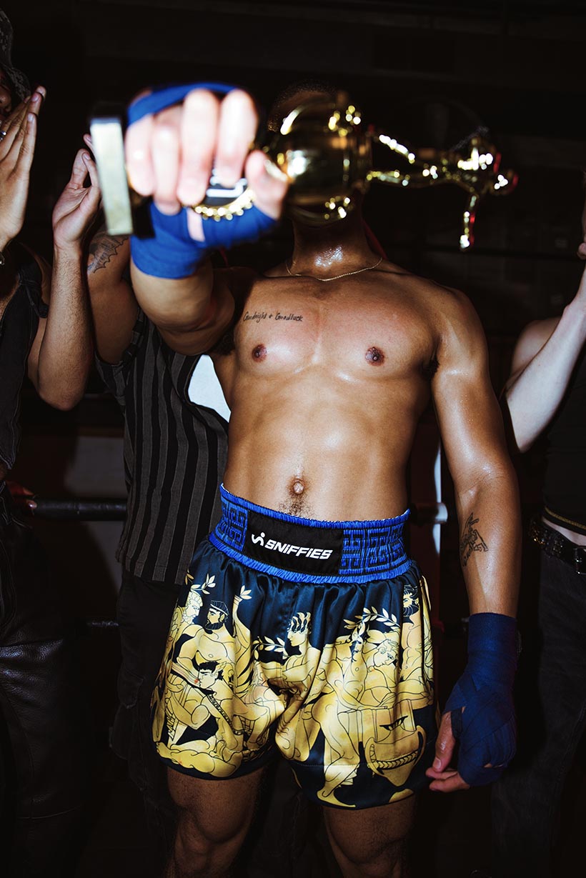They'll look closer and closer at the epic Sniffies Greco Boxing Shorts. We commissioned the incredible Joey Teeling (@skin.arcade) to design the Dionysian print on this elite boxer-inspired short to celebrate the sexiest summer yet. A geometric, elastic waistband, logo patches & drawstrings, pockets for the essentials, and a mid-thigh fit complement this one-of-a-kind art print. These are limited edition, so snag them while you can.