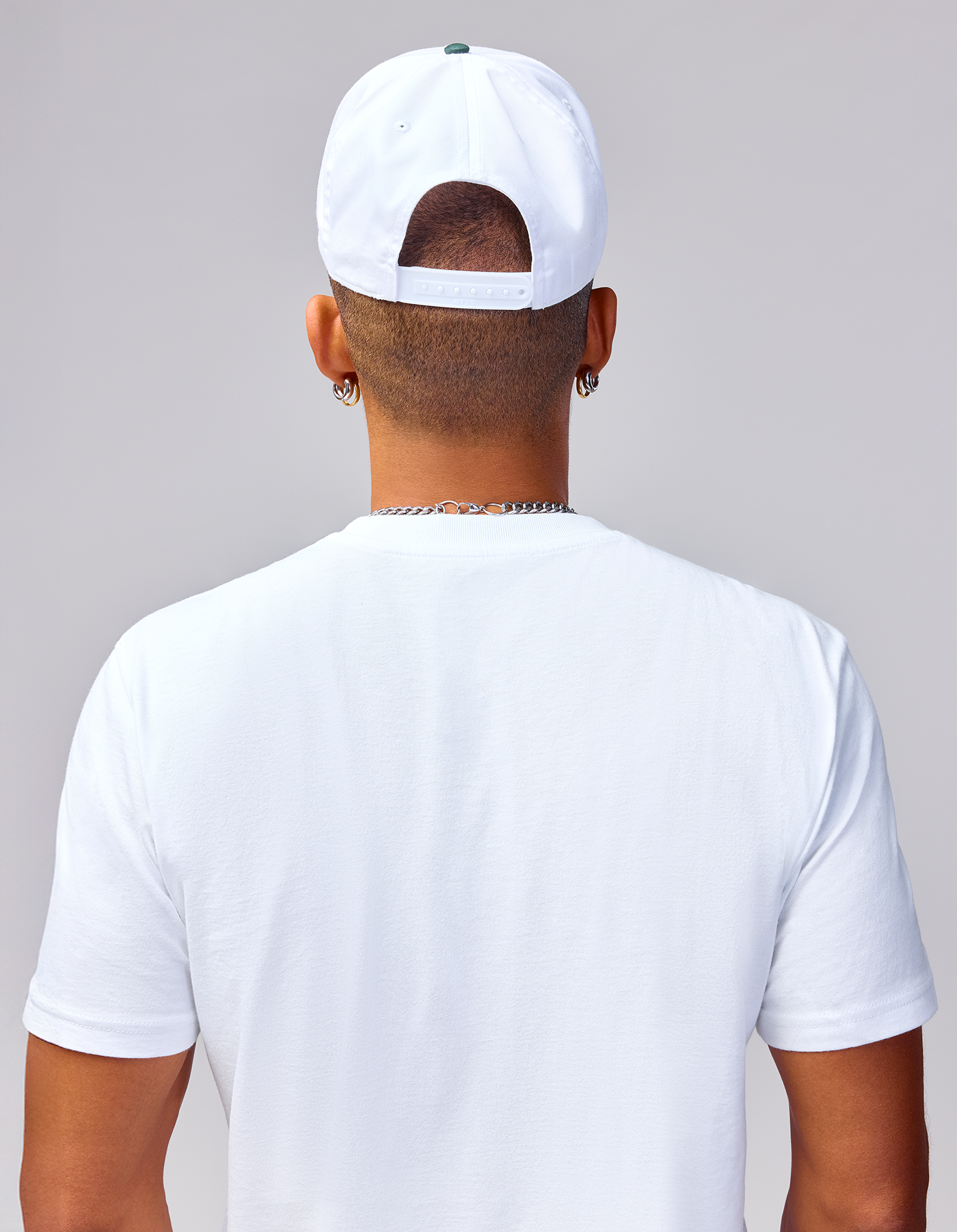 - White cap with a contrasting green bill for a standout look